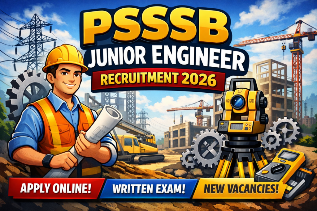The Punjab Subordinate Services Selection Board (PSSSB) has launched a major recruitment drive for Junior Engineer positions in 2026 (often referred to as PSSSB JE Recruitment 2026 or Advt. 15/2025 and 16/2025 combined). This opportunity targets qualified engineering professionals seeking government roles in Punjab’s various departments.