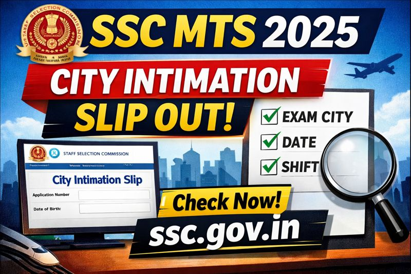 The Staff Selection Commission (SSC) has officially released the City Intimation Slip for the Multi-Tasking (Non-Technical) Staff and Havaldar (CBIC & CBN) Examination, 2025 on its official website, ssc.gov.in. This important update was made available to candidates on January 30, 2026, allowing aspirants to check their allotted examination city, tentative date, and shift details in advance of the upcoming computer-based test (CBT).